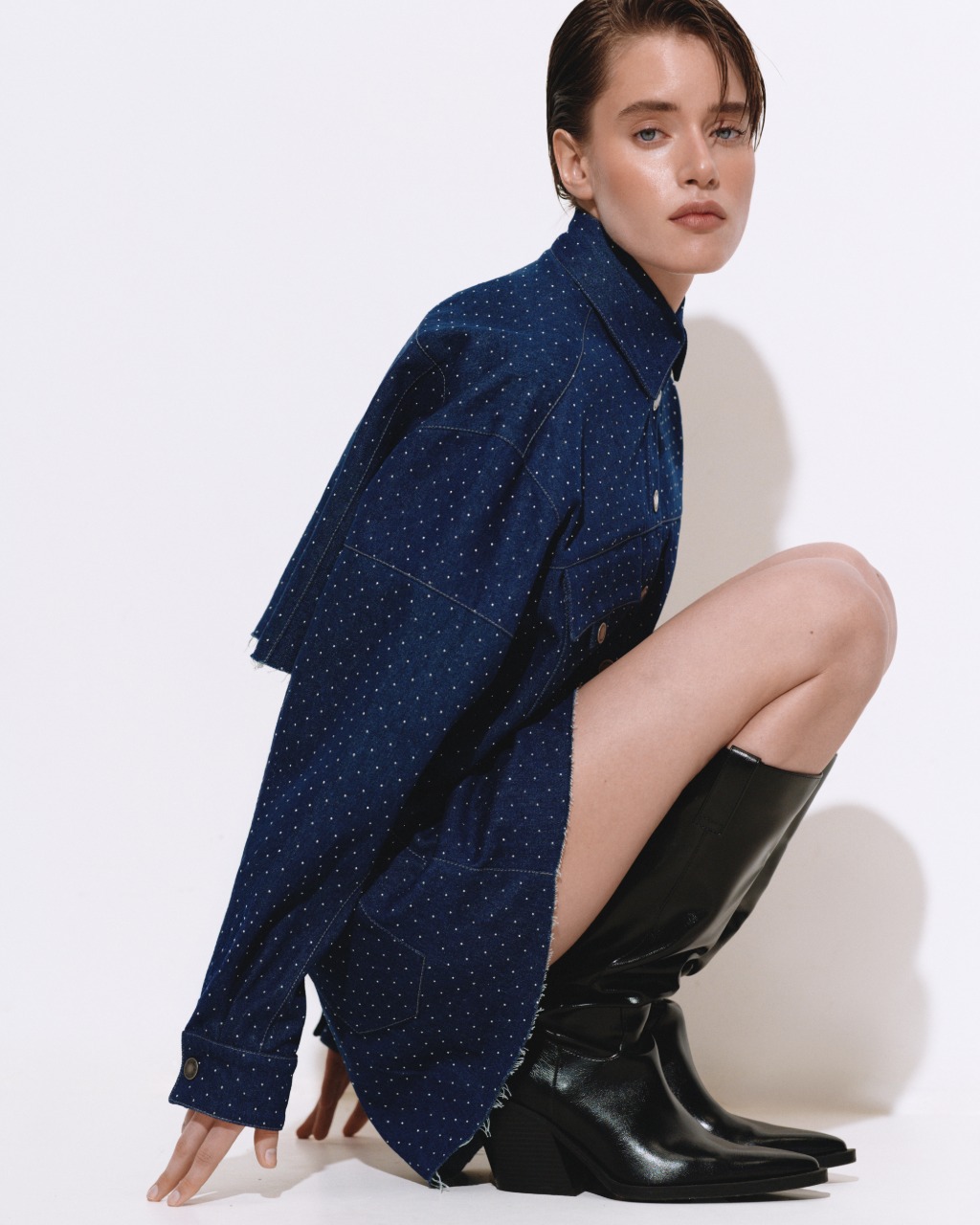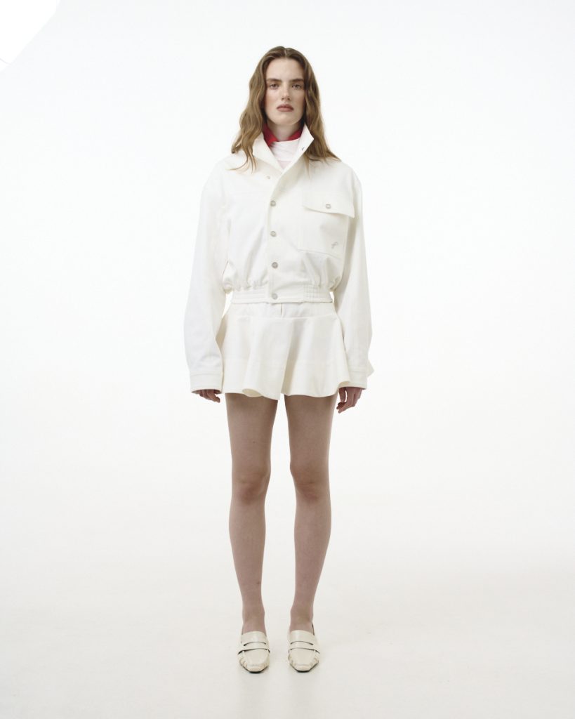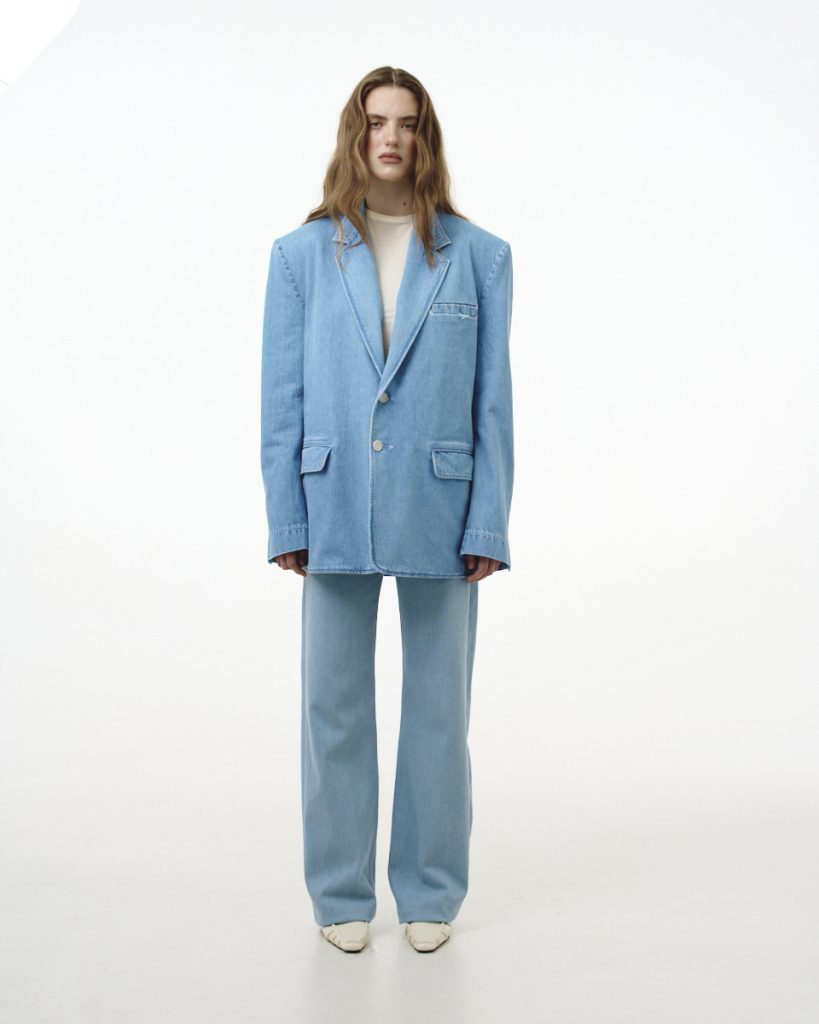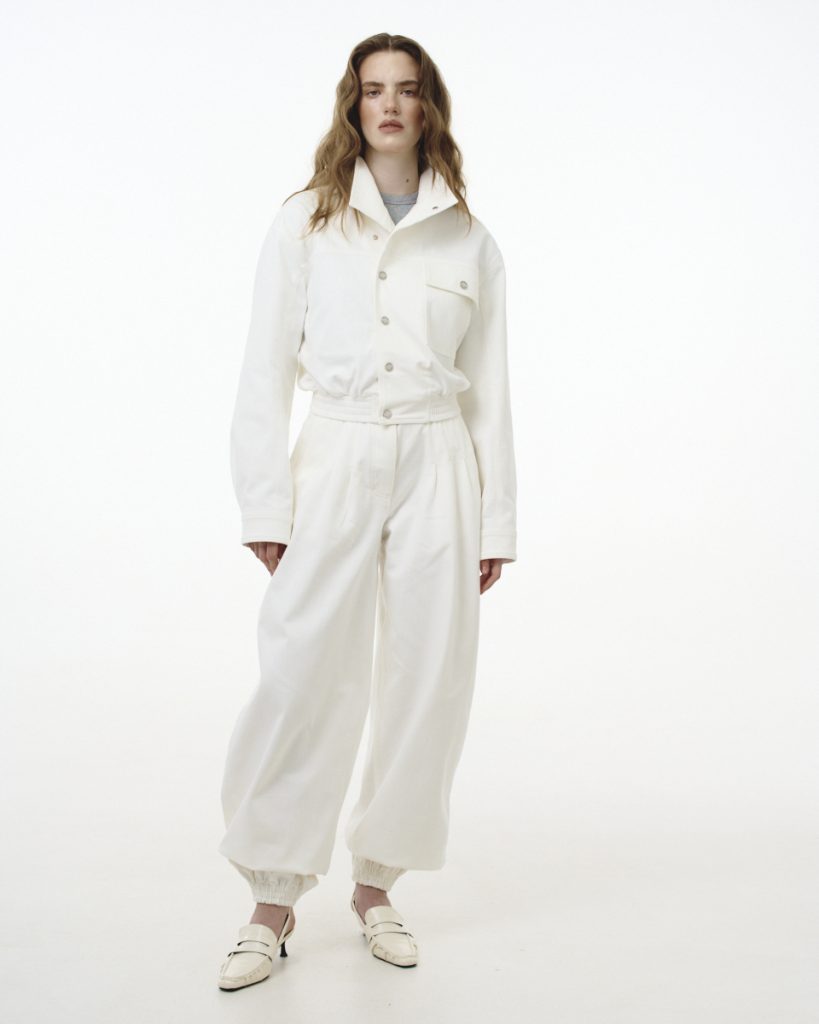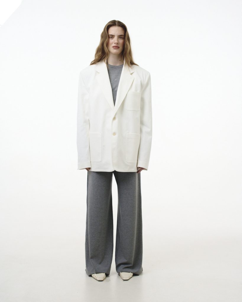 У колекції поєднуються чисті форми, тактильні тканини та виразні деталі. Палітра побудована на вивіреному балансі відтінків — від вибіленого деніму до глибокого індиго, від молочних тонів до теплого бежу. Кожен образ звучить стримано, але впевнено, без зайвого галасу, проте з чітким характером.