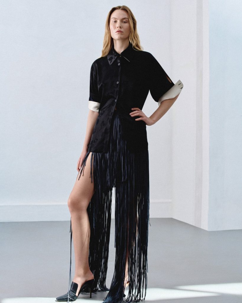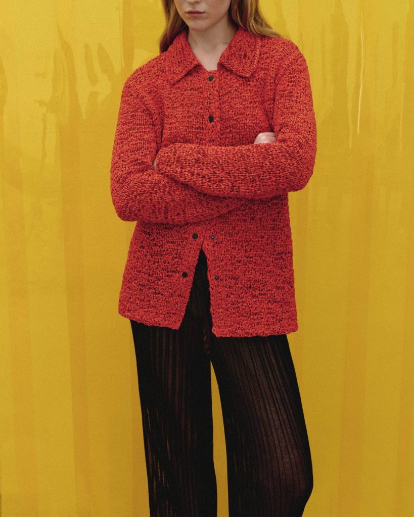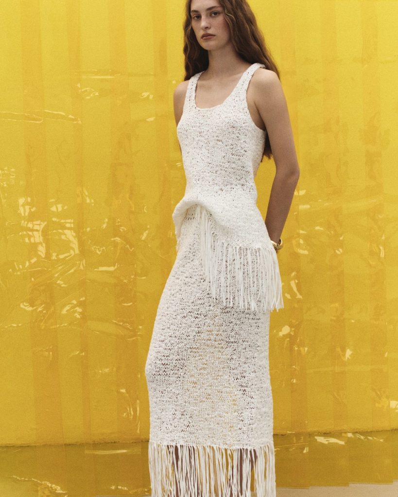 Цього сезону креативна директорка Катерина Квіт грає на контрастах, створюючи гардероб для жінки, яка не боїться бути різною. Головним героєм колекції стає складний трикотаж. Бавовняний шнурок перетворюється на архітектурні топи, кардигани та спідниці, виконані в техніці “artisan macramé”. Чисті кольори – безкомпромісний білий та пристрасний червоний – підкреслюють графічність плетива.