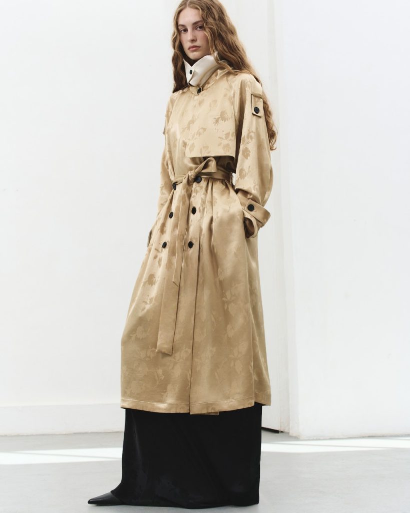 Окремої уваги заслуговує робота з текстурованим шовком, розшитим флористичними мотивами, що нагадують акварельні етюди, та культовою замшею бренду. У сезоні SS’26 замша набуває відтінків ранкового неба (dusty grey) та морської гладі (soft blue), створюючи ефект “другої шкіри”. KATERINA KVIT SS’26 – це баланс між чіткістю ліній і напівтонами емоцій, створений для життя у великому місті.