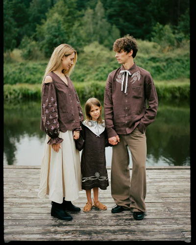 Бренд етнічного одягу з Сумщини EMBR GEM та арт-бренд з Одещини URURUR об’єднались для створення святкової колекції одягу та аксесуарів. Центральні символи колекції — ластівка та пара закоханих лелек. Їх зображення прикрашають лляні вишиті сорочки та сукні, плахти, комірці та хустки, а також кулони-талісмани та дармовиси, розписані вручну. Автором орнаментів, які лягли в основу святкової колекції, стала художниця та засновниця бренду URURUR Леся Станкевич. Птахи, квіти та серця в її виконанні виглядають сучасно і водночас дуже традиційно.