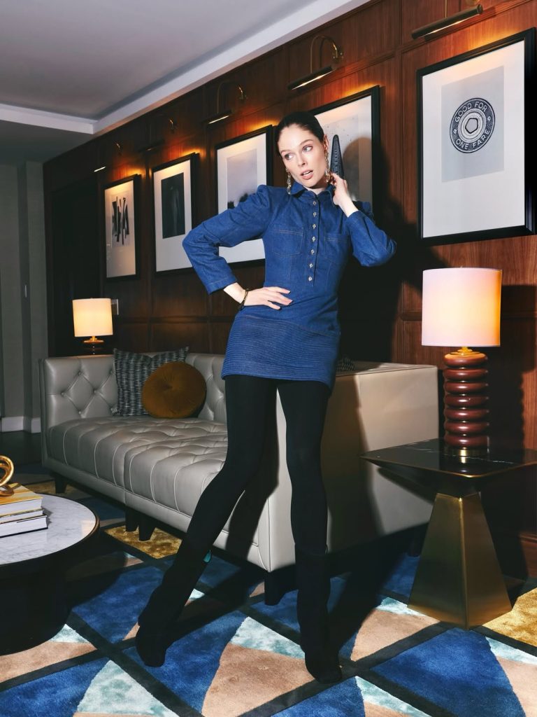 Для зйомки та відвідування івенту бренду Acurela Коко з’явилася у джинсовій мінісукні GURANDA з колекції FW’25–26. Модель вирізняється виразним архітектурним кроєм, що підкреслює фірмову увагу бренду до конструктивних рішень і роботи з формою.